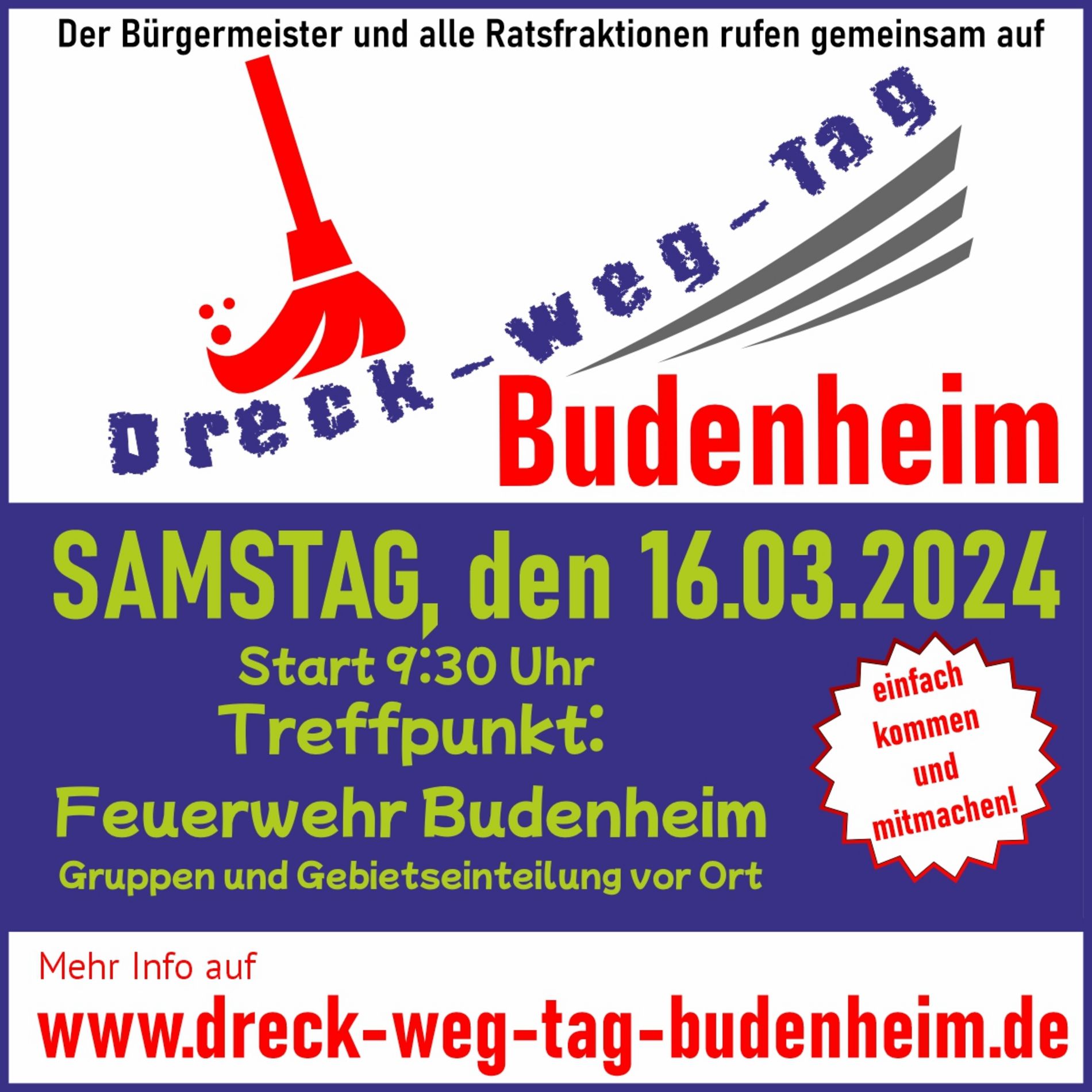 Der nächste Dreck-Weg-Tag ist in Budenheim am 16.3.2024